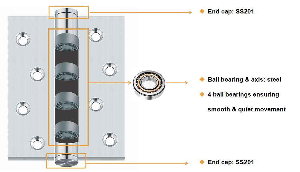 Thirdly, the bearing is the core of whether a hinge is smooth. Many hinges do not have bearings and are opened and closed solely by the support of the material itself. In this case, it is not smooth to use and is prone to noise. Our hinges can be equipped with 4 bearings, which can ensure long-term smoothness and quietness during use, providing a very good user experience.