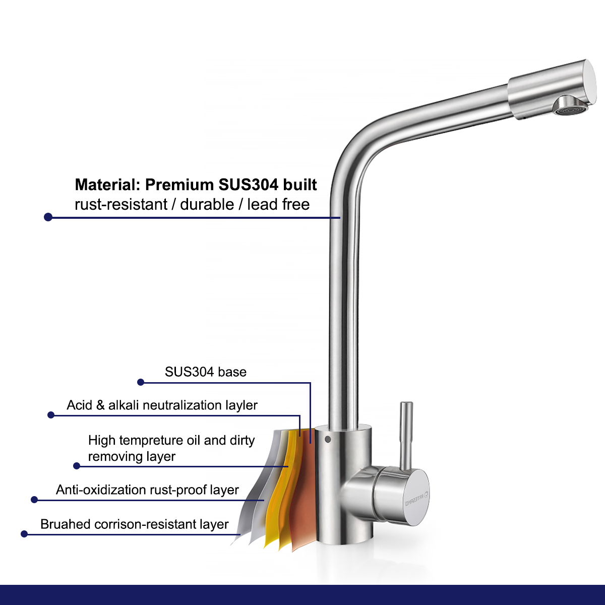 Artesano 304 Stainless Steel Kitchen Faucet Mixer, 360° rotating